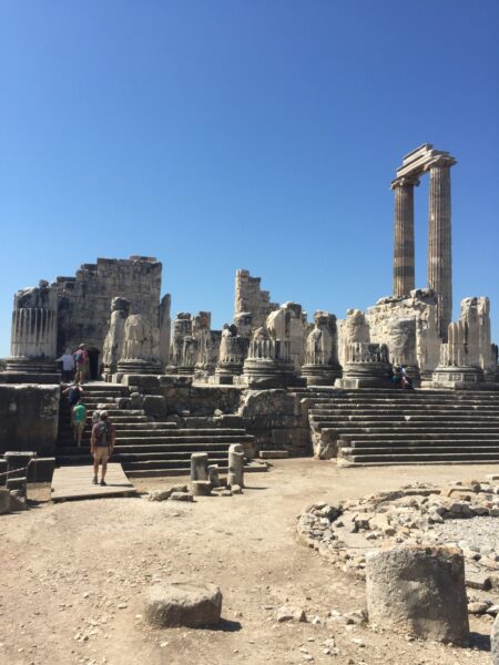 Day 5/Saturday 6 June 2026: After checking out, we head for Miletus (A/B), fabled home of the first philosophers. We then continue to the great Temple of Apollo at Didyma (A) where we lunch. Then we head for Bodrum, stopping off for brief visits to the newly excavated remains at Euromos (A) and Mylasa (A), the original capital of the 4th-century BC Hecatomnids. That evening we board our gulet at Bodrum where dinner awaits.