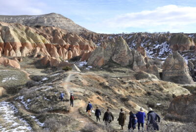 Day 6/ Fri Feb 6 2026: A hike along the Red Valley provides us with a stunning introduction to Cappadocia’s surreal landscapes. After a stop for warming drinks we head for the Open Air Museum, one of the region’s most spectacular clusters of rock churches. We lunch in the nearby town of Göreme, which guests have time to explore. Before dinner we enjoy a short performance of the sema, the hypnotic dance of the Whirling Dervishes, at Saruhan, a 13th-century Silk Road caravansaray. We dine in the nearby town of Ürgüp.